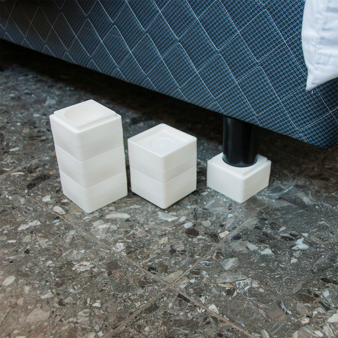 Cada taco eleva 5 cm y permite lograr alturas de hasta 15 cm. Pensados para elevar camas o muebles de forma segura, sin perder estabilidad ni diseño.
